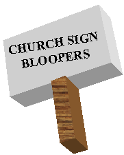 help. For those of you who have children and don't know it, we have a nursery downstairs. The rosebud on the altar this morning is to announce the birth of David Alan Belzer, the sin of Rev. and Mrs. Julius Belzer. This afternoon there will be a meeting in the south and north ends of the church. Children will be baptized at both ends. Tuesday at 4 pm there will be an ice cream social. All ladies giving milk will please come early. Wednesday, the Ladies Liturgy Society will meet. Mrs. Jones will sing "Put Me In My Little Bed" accompanied by the pastor. Thursday at 5 pm there will be a meeting of the Little Mothers Club. All wishing to become Little Mothers, please see the minister in his private study. This being Easter Sunday, we will ask Mrs. Lewis to come forward and lay an egg on the altar. The service will close with "Little Drops Of Water." One of the ladies will start (quietly) and the rest of the congregation will join in. Next Sunday, a special collection will be taken to defray the cost of the new carpet. All those wishing to do something on the new carpet will come forward. The ladies of the church have cast off clothing of every kind and they may be seen in the church basement Friday. A bean supper will be held on Tuesday evening in the church hall. Music will follow. At the evening service tonight, the sermon topic will be "What Is Hell?" Come early and listen to our choir practice. Weight Watchers will meet at 7 pm at the First Presbyterian Church. Please use large double door at the side entrance. The 1991 Spring Council Retreat will be hell May 10 and 11. Pastor is on vacation. Massages can be given to church secretary. Eight new choir robes are currently needed, due to the addition of several new members and to the deterioration of some older ones. Mrs. Johnson will be entering the hospital this week for testes. The senior choir invites any member of the congregation who enjoys sinning to join the choir. Please join us as we show our support for Amy and Alan in preparing for the girth of their first child. Scouts are saving aluminum cans, bottles and other items to be recycled. Proceeds will be used to cripple children. The associate minister unveiled the church's new tithing campaign slogan last Sunday: "I Upped My Pledge - Up Yours." |